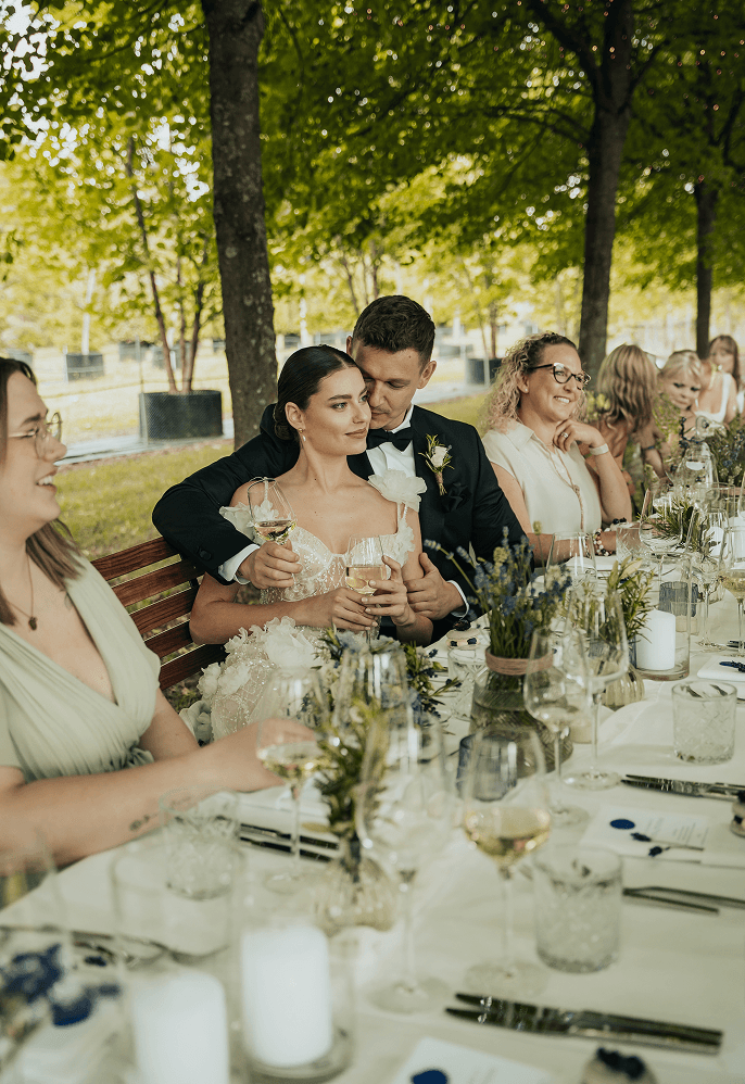 Wenn Ihr Euch für eine Feier in unserer Location Eichenstolz entscheiden, kann sowohl Eure Freie Trauung als auch die anschließende Feier direkt im Grünen stattfinden. Eine lange Tafel lädt zum gemeinsamen Festessen unter den Bäumen ein, perfekt für romantische Momente im Freien.